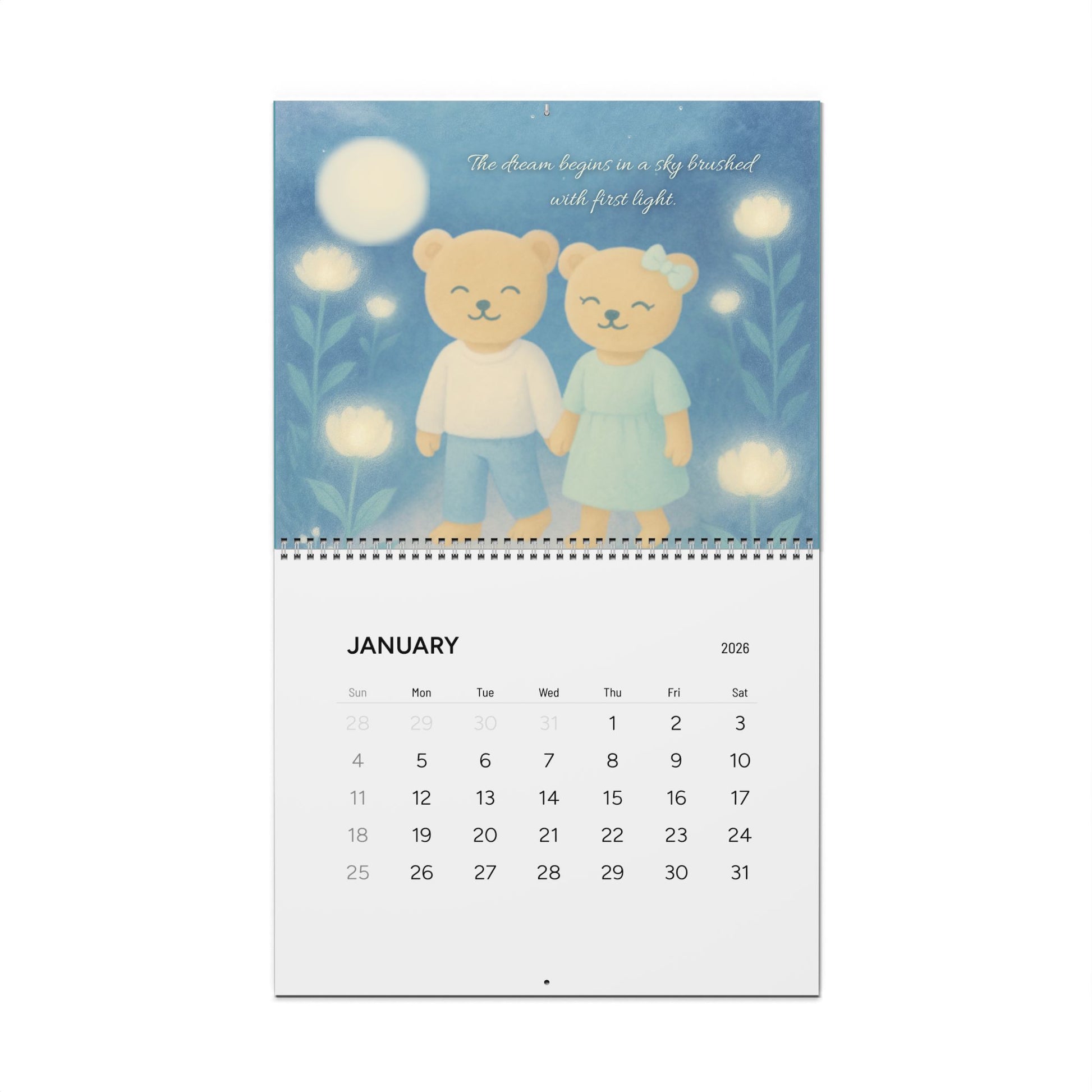 Charming 2026 Wall Calendar with Adorable Bear Illustrations