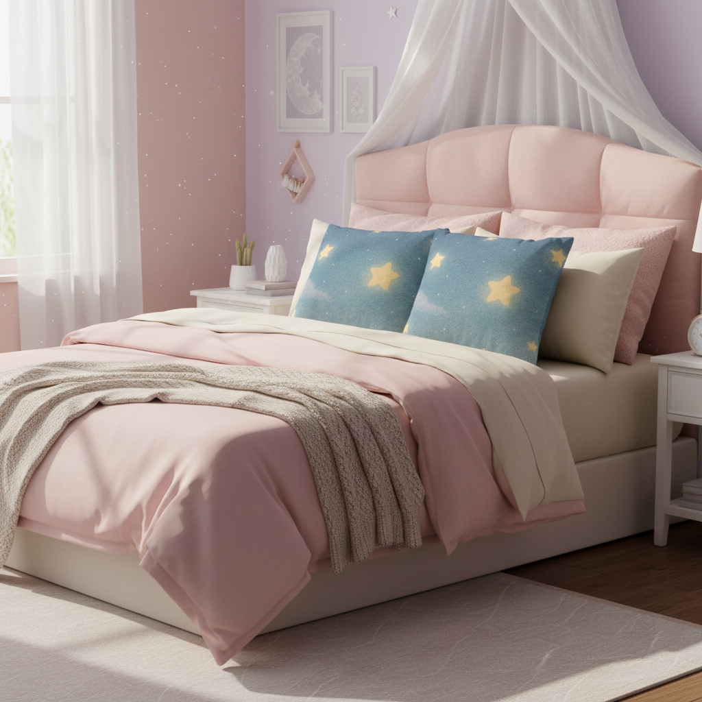 A dreamy faux suede pillow cover with glowing stars — perfect for cozy corners, bedtime calm, and peaceful nights under gentle light.