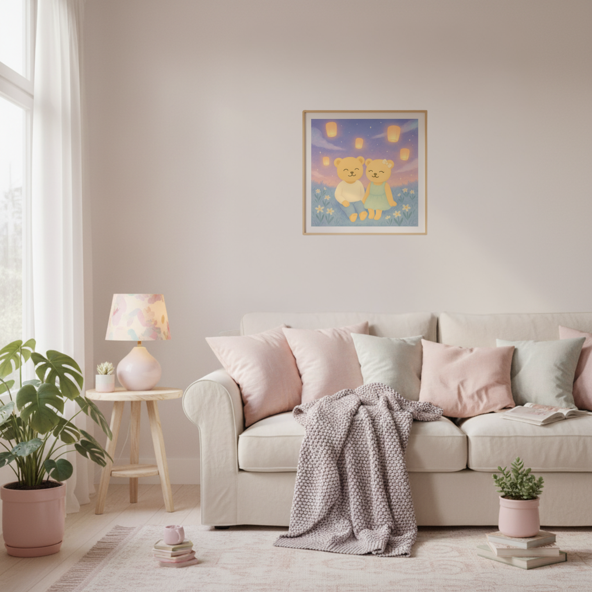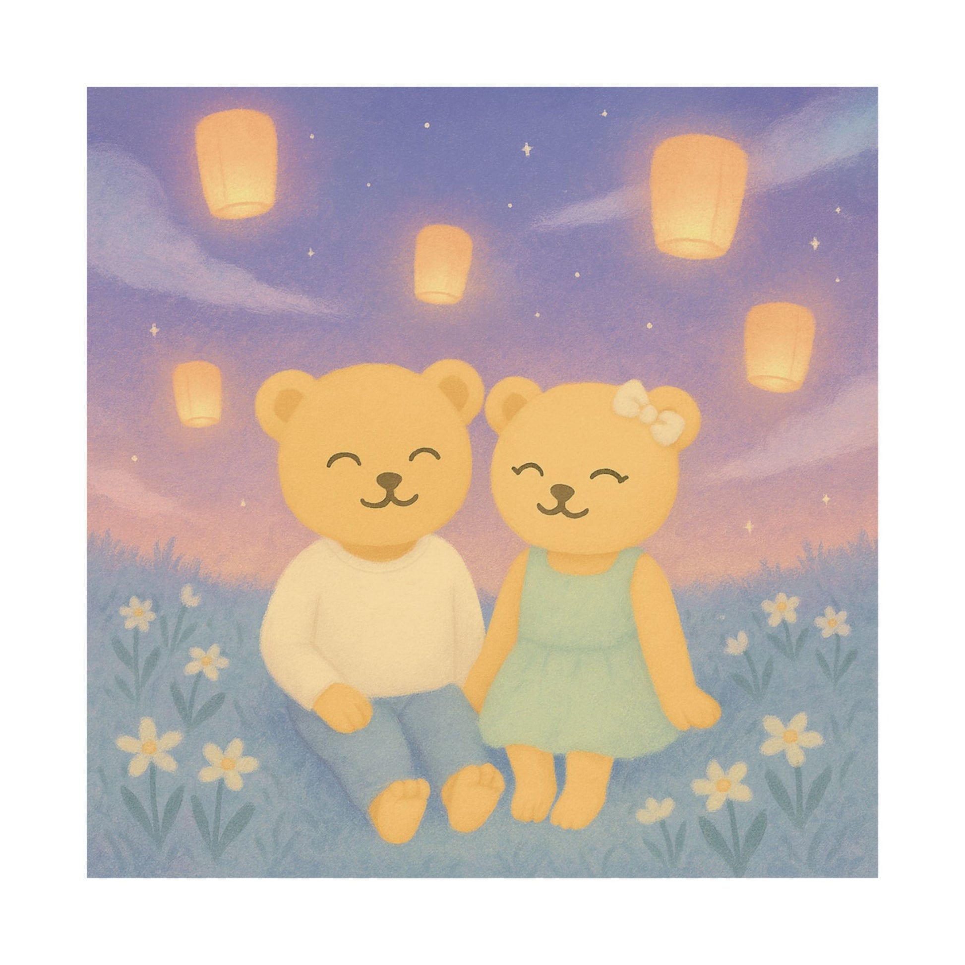 Soft light, open skies, and gentle hearts. A whimsical Aimerish art print reminding you that every dream shared glows a little brighter.